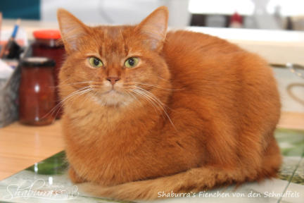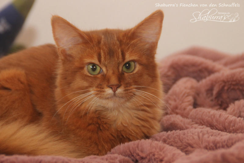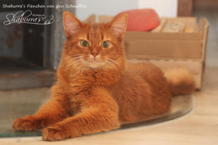 Shaburra`s Fienchenvon den Schnuffels- Großer Internationaler Champion -Geburtsdatum: 29.01.2022Farbe:sorrelBlutgruppe:A (evtl. N/b Trägerschaft vorhanden)PK:N/N normal (frei) PRA:N/N normal (frei) Stammbaum auf Pawpeds