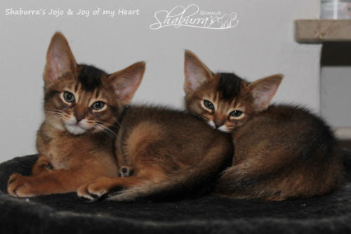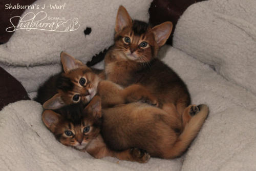 Geboren am 10.03.2019 Eltern: CH Shaburra`s Gianna Nannini x Asili`s Cooper Jojo Abessinier Variant - ruddy - männlich - ausgezogen - Joy of my Heart Abessinier Variant- ruddy - weiblich - ausgezogen - John Applebee II. Somali - ruddy - männlich- ausgezogen-