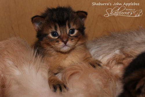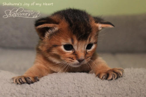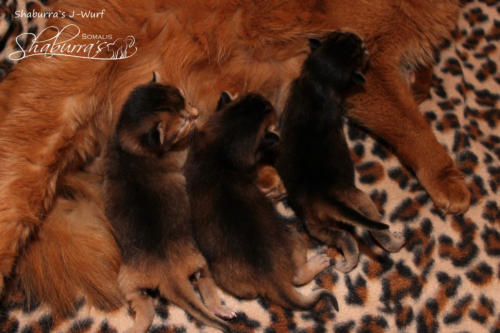 Geboren am 10.03.2019 Eltern: CH Shaburra`s Gianna Nannini x Asili`s Cooper Jojo Abessinier Variant - ruddy - männlich - ausgezogen - Joy of my Heart Abessinier Variant- ruddy - weiblich - ausgezogen - John Applebee II. Somali - ruddy - männlich- ausgezogen-