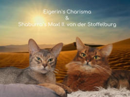 Geboren am 26.03.2024 Eltern: Eigerin`s Charisma x Shaburra`s Maxl II. von der Stoffelburg Alle Babys sind Abessinier Variant (Kurzhaar-Somalis) Santa Fee Aby Variant- wildfarben - weiblich (bleibt) Sky Princess Aby Variant - blue- weiblich (ausgezogen) Snuggles Aby Variant - wildfarben- männlich (ausgezogen) Speedy Gonzales Aby Variant- wildfarben- männlich (ausgezogen)
