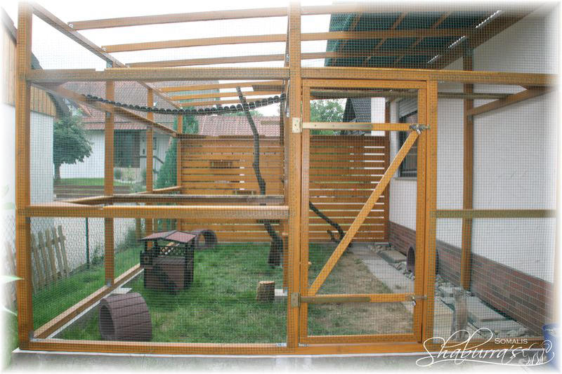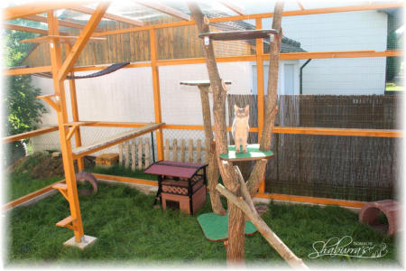 Im Sommer 2015 erfüllte ich mir und meinen Katzen einen langen Traum. Besser gesagt: Vorallem mein Mann und dessen Onkel erfüllten uns diesen Traum, denn die beiden waren es, die durch viel viel Arbeit ein Stückchen Katzenglück erschufen: Unser Freigehege mit 24 qm Fläche und 2,5 mtr. Höhe. Es ist einfach ein Traum meinen Katzen zuzuschauen, wie sie dieses Stückchen Freiheit genießen und lieben. Hier und da werden zwar noch ein paar zusätzliche Kletter- und Schlafplätze entstehen, aber das kommt noch mit der Zeit nach und nach. Und klar - ich habe da noch einiges “mehr” im Hinterkopf - denn die nächste Stufe wäre einmal ein katzensicherer Garten. Da dies aber nur mit hohen Kosten verbunden sein wird - heißt es in den nächsten Jahren erst einmal sparen sparen sparen. Aber irgendwann wird es wahr sein, dass ich im Garten sitzen kann und meine Katzen um mich herum spazieren können...